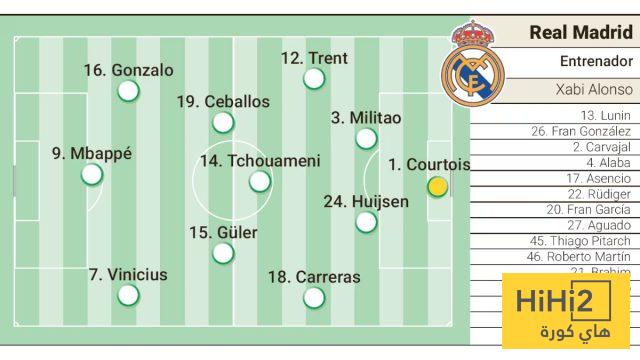 ووفقًا لصحيفة اَس الإسبانية، فإن التشكيلة المتوقعة للميرينغي في اللقاء جاءت على النحو التالي: