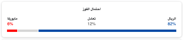 نسبة فوز الريال تصل الى 82% والتعادل 12% اما الخساره فهي 6%