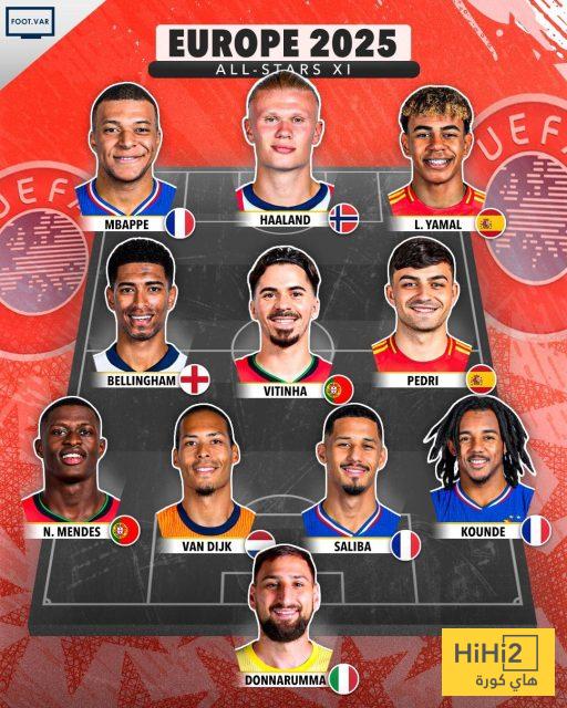 هاي كورة- اختار موقع فوتبول فار التشكيلتين المثاليتين لقارتي اوروبا و امريكا الجنوبية للعام 2025 تزامنا مع اخر فترة توقف دولي في السنة .