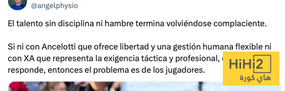 إذا لم يُلبِّ الفريق طلبات أنشيلوتي في الموسم الماضي حيث كان يمنحهم الكثير من الحرية ، ولم يتطور مع تشابي ، الذي يُمثِّل الصرامة التكتيكية والمهنية، فإن المشكلة تكمن في اللاعبين .