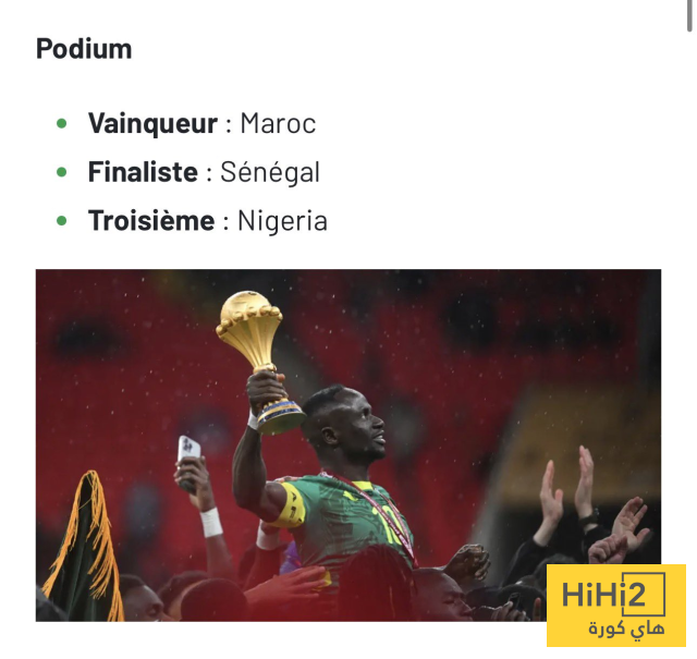 الكاف نشر في الساعات الأخيرة تعديل الترتيب النهائي لكأس أمم إفريقيا ، حيث أصبح منتخب أسود أطلس في المركز الأول كأبطال للقارة ، بينما تراجعت السنغال لمركز الوصيف ، مع إبقاء نيجيريا المركز الثالث .