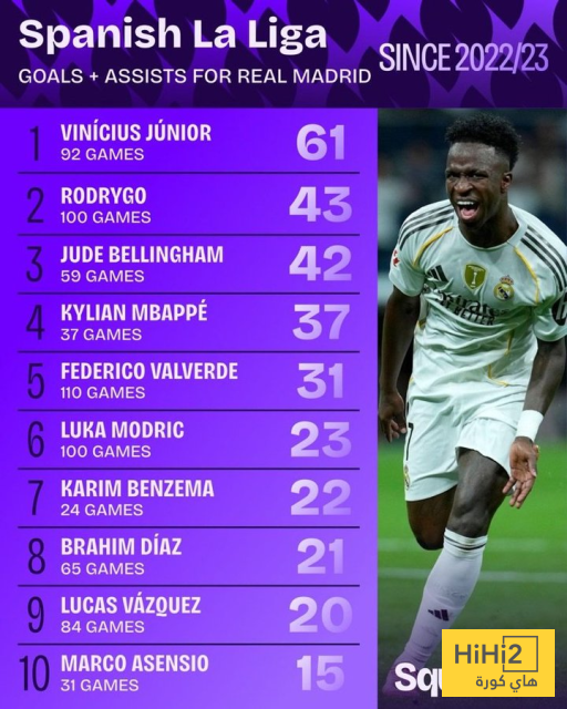 وتصدر فينيسيوس جونيور القائمة برصيد 61 هدف، يليه مواطنه رودريغو ثم جود بيلينغهام بينما يحل كيليان مبابي في المركز الرابع .