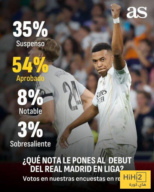 هاي كورة – كشفت صحيفة آس الإسبانية عن نتائج استطلاع رأي جماهيري أجرته عقب مباراة ريال مدريد الافتتاحية في الدوري الإسباني أمام أوساسونا، حيث حصل الفريق على تقييم عام “مقبول”.