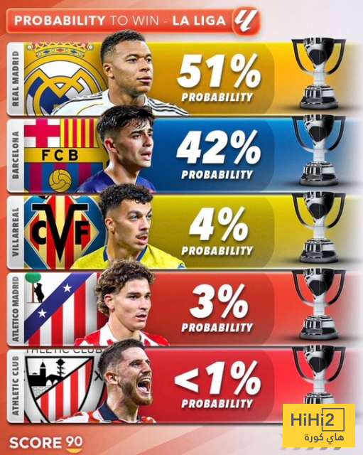 بينما بلغت حظوظ برشلونة للحفاظ على اللقب المحلي 42% ، في حين لم تتجاوز نسب اتلتيكو مدريد 3%.
