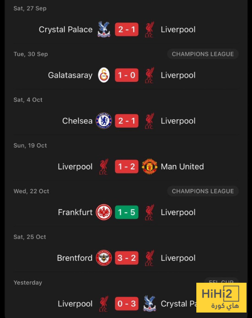 الصورة التالية تكشف النتائج الكارثية للريدز في آخر 7 مباريات حيث لم يحقق ليفربول سوى فوز واحد فقط وكان في بطولة دوري الابطال ضد غلطة سراي .