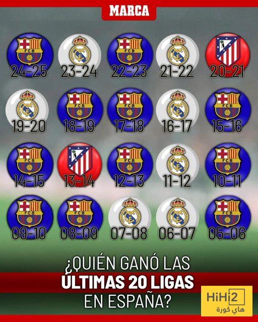 هاي كورة- قبل بدء الموسم بساعات بسيطة، عرضت صحيفة ماركا صور المتوجين بالدوري في آخر 20 سنة، حيث سيطر الفريق الكتالوني طولًا وعرضًا على الدوري، في حين توج ريال مدريد بسبع بطولات خجولة وببطولتين لأتلتيكو.