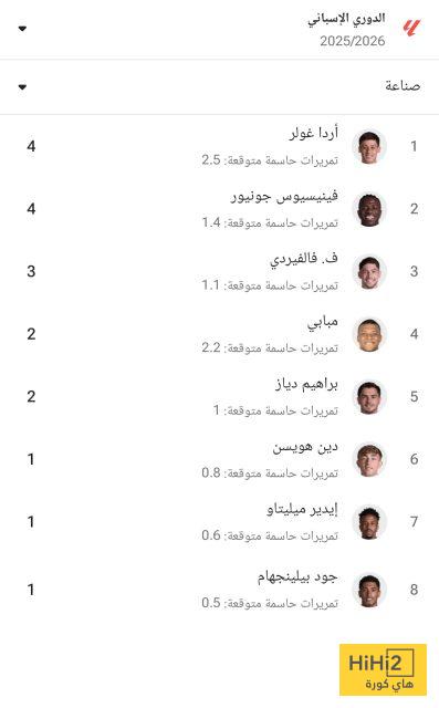 هاي كورة – يتصدر أردا غولر وفينيسيوس جونيور قائمة أكثر لاعبي ريال مدريد صناعة للأهداف في الدوري الإسباني هذا الموسم ، حيث قدم كل منهما 4 تمريرات حاسمة حتى الآن .
