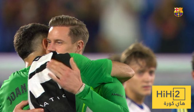 حارس مرمى برشلونة الجديد، خوان غارسيا، بعد انتهاء المباراة ذهب الى مارك اندريه تير شتيغن لمعانقته وتهنئته بالفوز.
