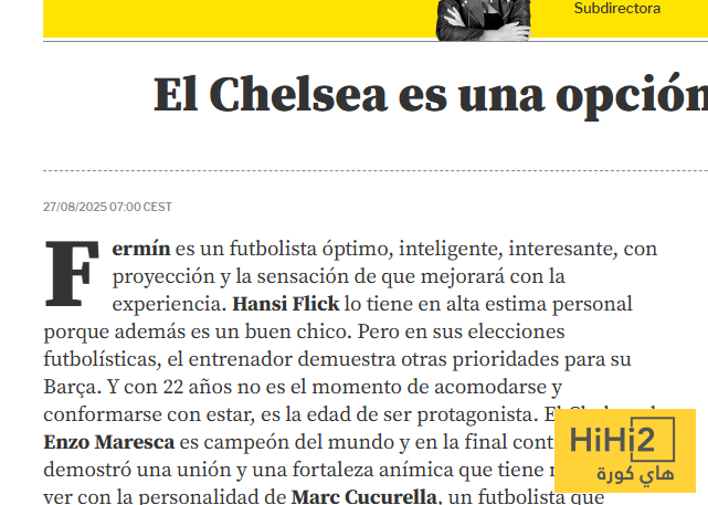 ” يعيش برشلونة تحت قيادة هانز فليك حالة من إعادة التوازن بين المواهب الشابة والطموحات الكبرى، فيرمين يُعد لاعبًا مميزًا بذكائه وإمكاناته الكبيرة، والمدرب الألماني يُقدّره على المستوى الشخصي، لكن خياراته التكتيكية تُظهر أولويات أخرى للفريق، فبعمر 22 عامًا، لا مجال للرضا أو الانتظار، بل هو العمر المثالي ليصبح اللاعب بطلا مثلما هو الحال في تشيلسي بقيادة إنزو ماريسكا، حيث كان مارك كوكوريلا حاضرًا بروحه القتالية وعمله كصوت ثانٍ للمدرب في الملعب، عاملًا حاسمًا في الفوز على باريس سان جيرمان والتتويج.