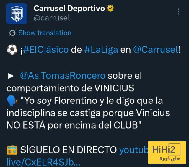 ” حول تصرفات فينيسيوس جونيور ، لو كنت مكان فلورينتينو لقت له أن قلة الانضباط يجب أن تُعاقب ، لأن فينيسيوس ليس فوق النادي “.