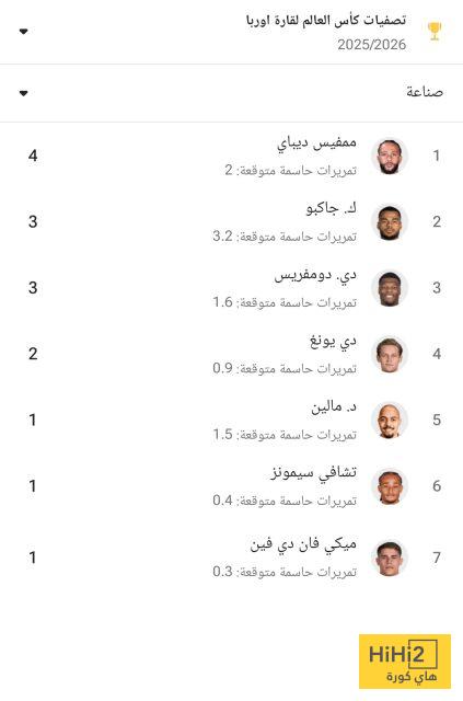 قائمة أكثر لاعبي هولندا صناعة للأهداف في تصفيات المونديال