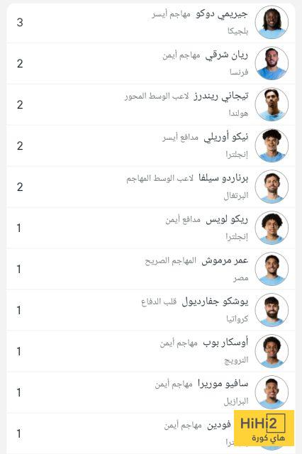 هاي كورة : يتصدر النجم ، جيريمي دوكو ، قائمة صناع أهداف مانشستر سيتي في الدوري الإنجليزي هذا الموسم .