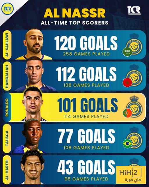 هاي كورة – يواصل كريستيانو رونالدو كتابة التاريخ مع النصر، حيث سجل حتى الآن 101 هدف، محتلاً المركز الثالث في قائمة هدافي النادي عبر التاريخ.