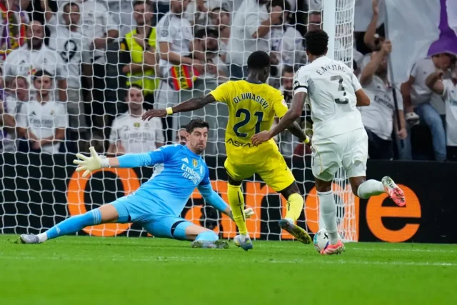 هاي كورة – واصل البلجيكي تيبو كورتوا تألقه اللافت مع ريال مدريد بعدما أنقذ فريقه من هدف محقق أمام فياريال في المباراة التي انتهت بفوز الميرنغي. حارس المرمى البلجيكي قدم واحدة من أبرز لقطات اللقاء عندما تصدى لتسديدة أولوواسيي من انفراد تام، في لقطة وصفها الإعلام الإسباني بأنها “تصدي من كوكب آخر”.