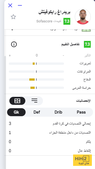 هاي كورة : ظهر بريدراغ رايكوفيتش حارس مرمى نادي الاتحاد بأداء مميز أمام الشارقة وحمى عرين العميد في أكثر من هجمه خطيرة، في بطولة دوري أبطال آسيا، وانتهت بثلاثة أهداف دون رد، أرقام اللاعب: