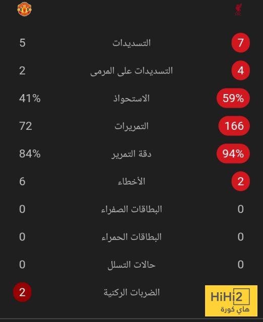 احصائيات الشوط الأول:
