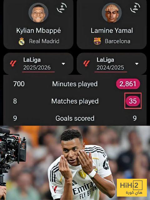 مبابي لعب حتى الان 700 دقيقة بينما لعب لامين يامال 2861 دقيقة خلال الموسم المنصرم .