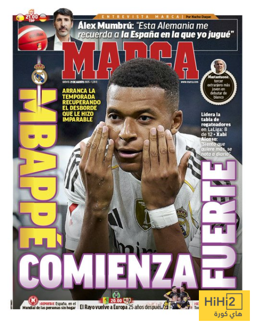 هاي كورة- لليوم الثاني على التوالي يتصدر كيليان مبابي غلاف صحيفة ماركا الاسبانية بعدما قاد الريال للفوز على اوساسونا في المباراة الاولى من الدوري الاسباني.