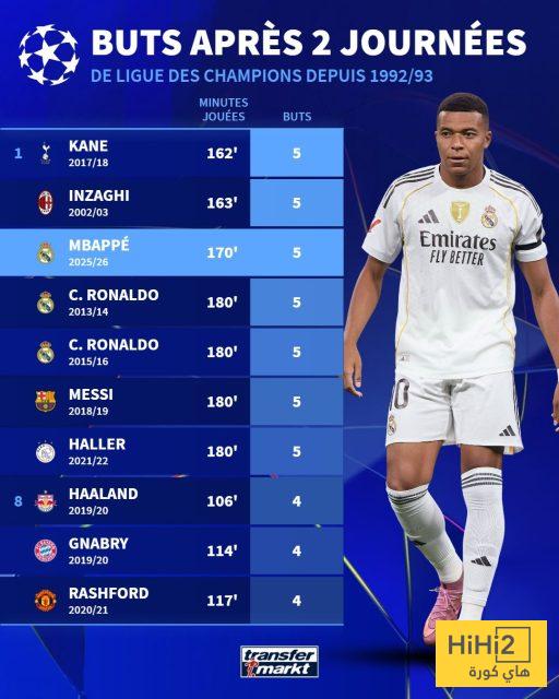 بداية مبابي في الموسم الحالي تعتبر ثالث افضل بداية في تاريخ مسابقة دوري ابطال اوروبا منذ اطلاقها عام 1992-1993.