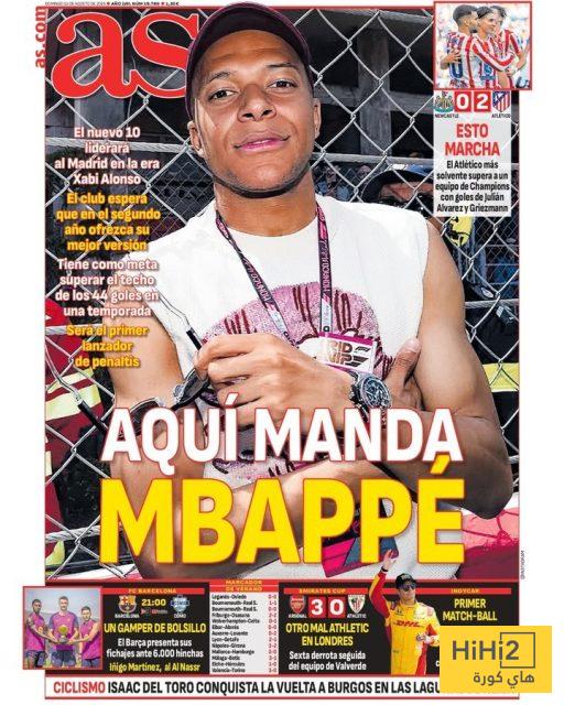 هاي كورة: تصدر نجم ريال مدريد، كيليان مبابي، غلاف صحيفة آس اليوم الأحد 10 أغسطس 2025.
