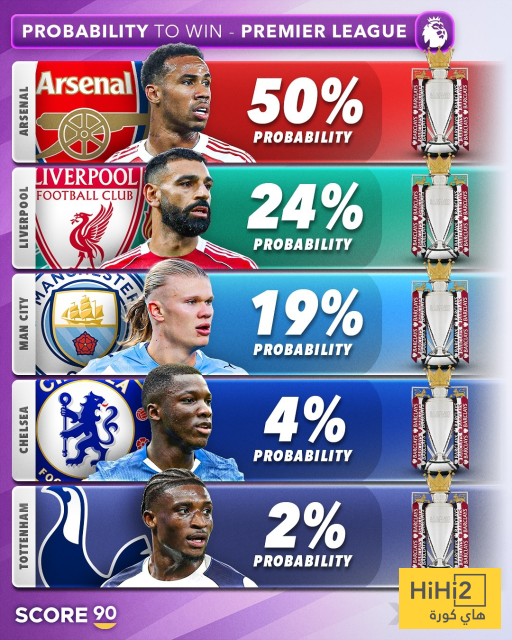 حسب توقعات الذكاء الاصطناعي لموقع سكور 90 فان ارسنال اصبح المرشح الاوفر حظا للفوز بلقب الدوري الممتاز بعد غياب طويل مقابل تراجع لافت في حظوظ حامل اللقب في الاحتفاظ بتاجه.