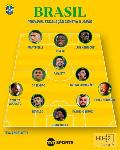 هاي كورة- كشفت شبكة TNT Sports عن التشكيلة المتوقعة لمنتخب البرازيل في مواجهته الودية المقبلة أمام اليابان، والتي شهدت وجود نجم ريال مدريد فينيسيوس جونيور أساسيًا، مقابل غياب رودريغو عن التشكيلة الأساسية.