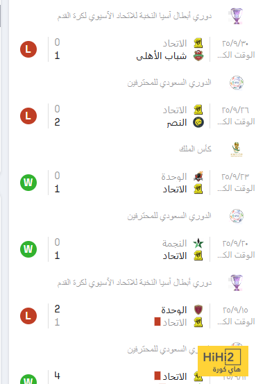 هاي كورة : شهد فريق الاتحاد تقلبات واضحة في الأداء خلال آخر 5 مباريات خاضها، حيث حقق الفريق فوزين مهمين، وتلقى الهزيمة في 3 مواجهات، في مختلف البطولات المحلية والقارية.