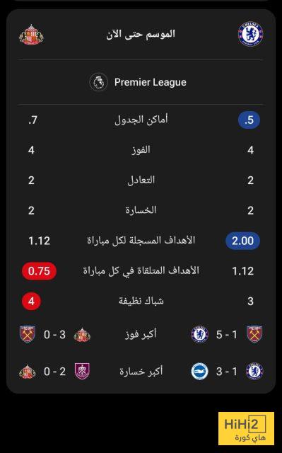 نتائج تشيلسي و سندرلاند هذا الموسم