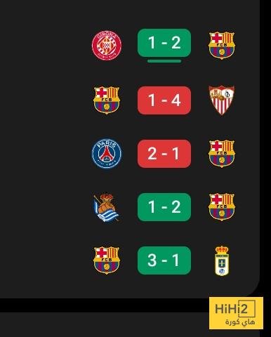 برشلونة في أخر 5 مباريات قبل مواجهة اولمبياكوس حقق الفوز في 3 وخسر 2.