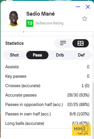 أرقام ساديو ماني في الشوط الأول ضد الاتحاد