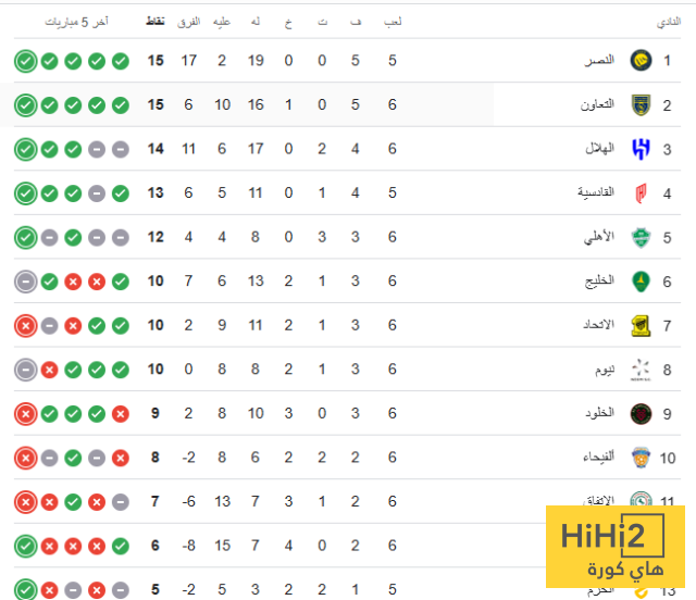 ترتيب الدوري السعودي بعد قمة الهلال والاتحاد