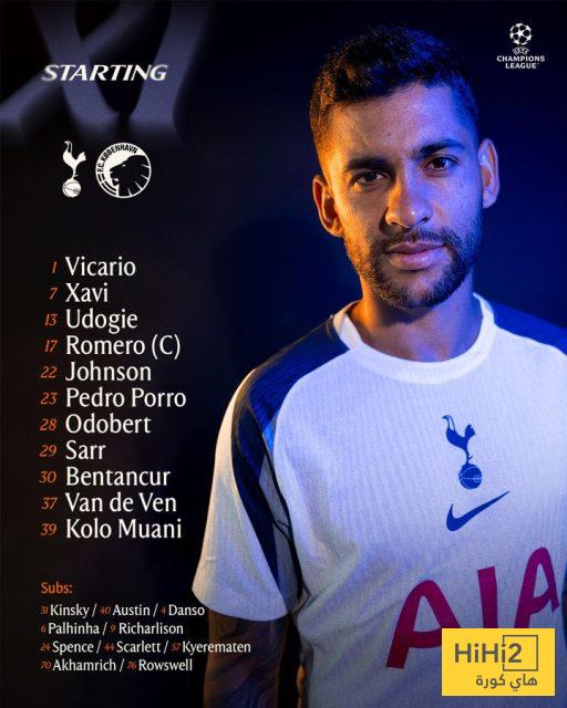 تشكيلة توتنهام الرسمية ضد كوبنهاغن في دوري أبطال أوروبا